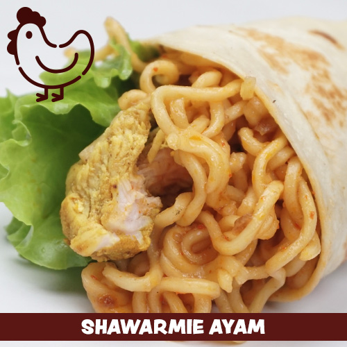 Shawarma dan mie?? kombinasi NAMPOL!! Ayam yang juicy, mie goreng, saus spesial, dan sayuran segar, semua dibalut tortila lembut yang menggoda.