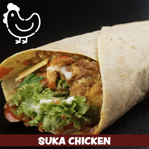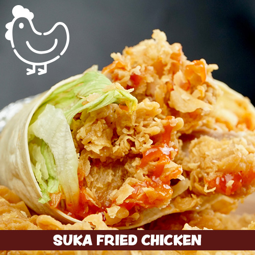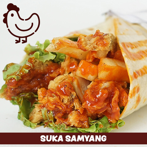Dengan isian daging ayam crispy, kentang goreng, sayuran segar, dan saus pedas korea ala chef SUKA. Cocok untuk para pecinta DraKor 🙂